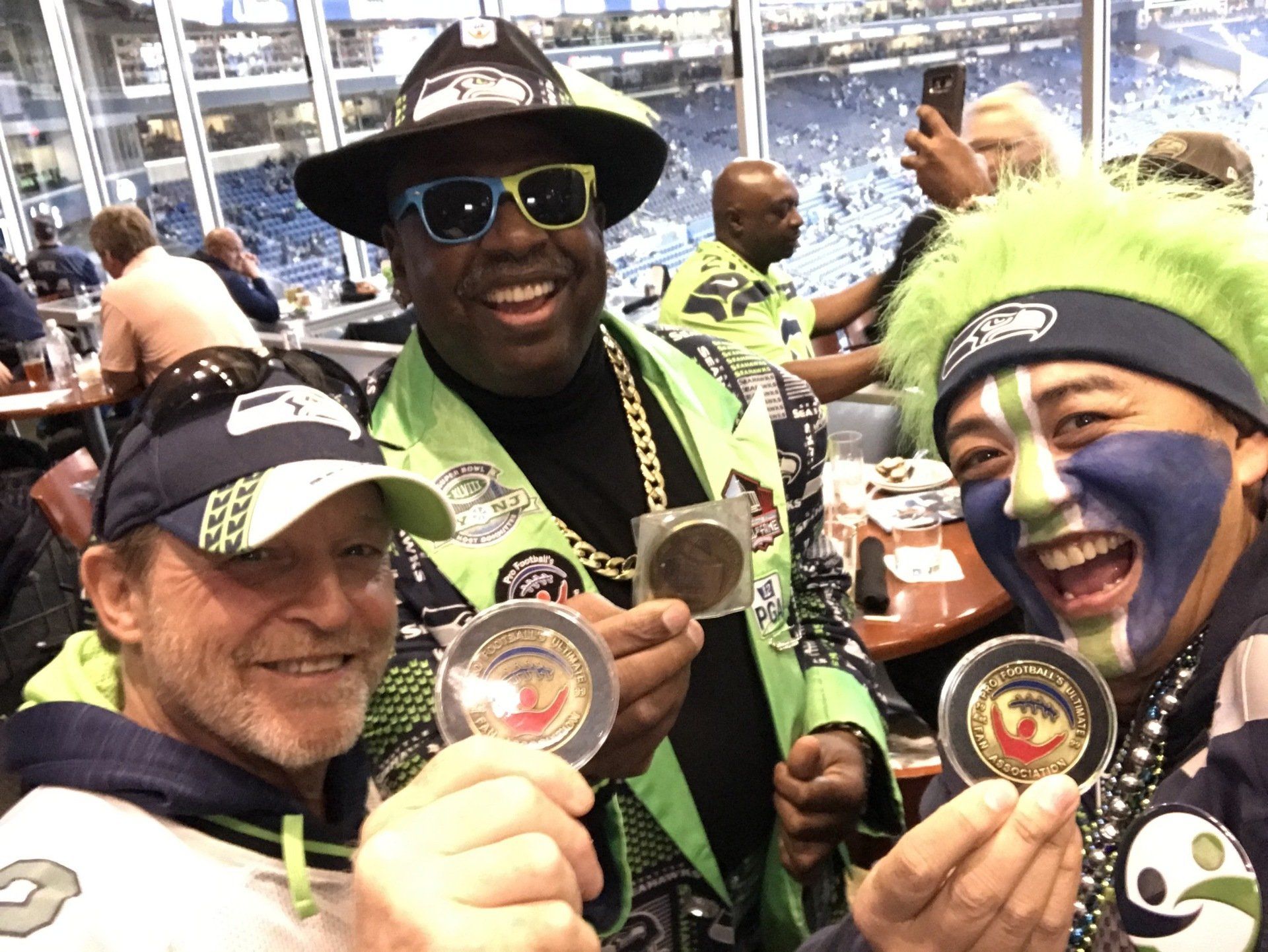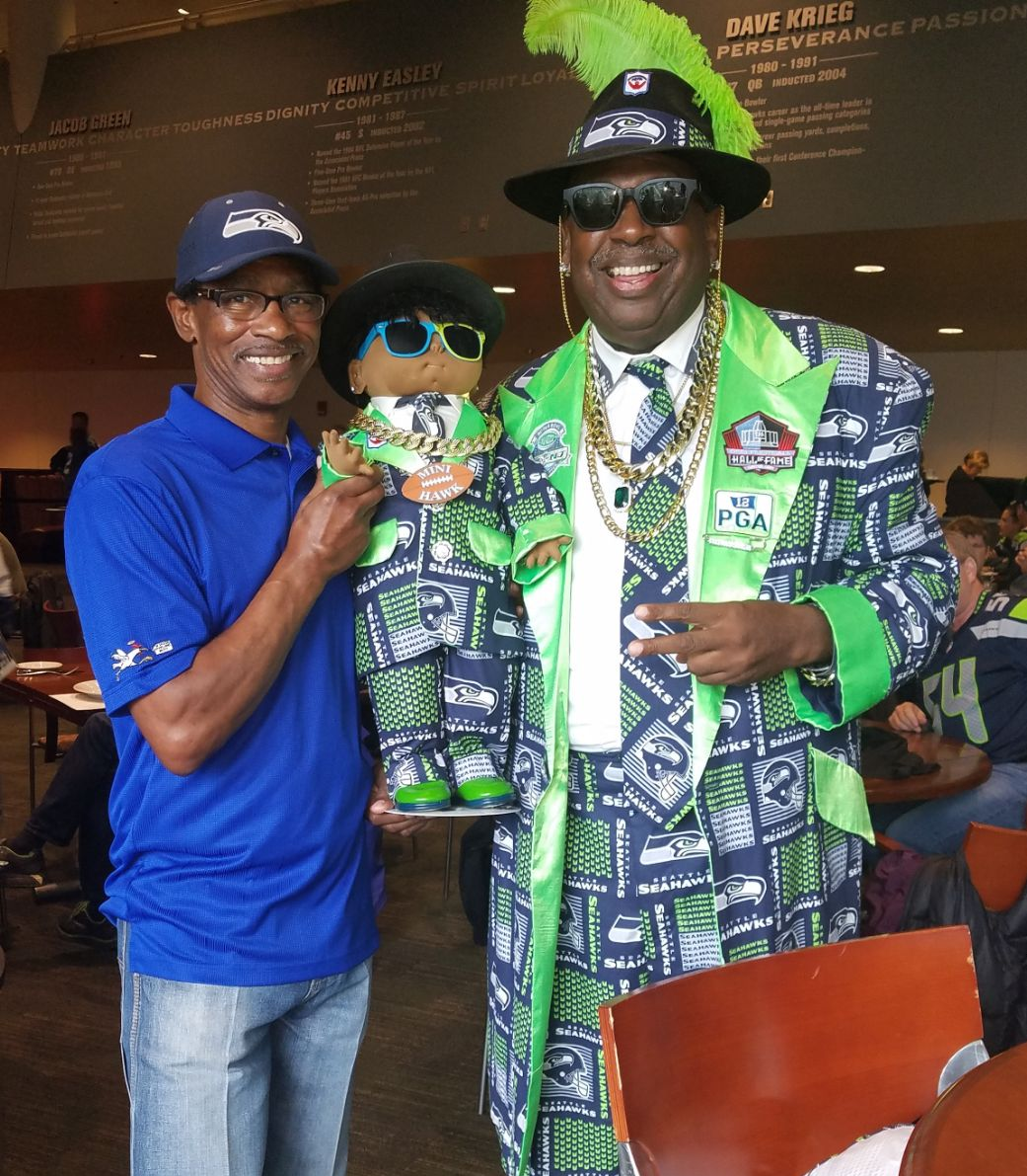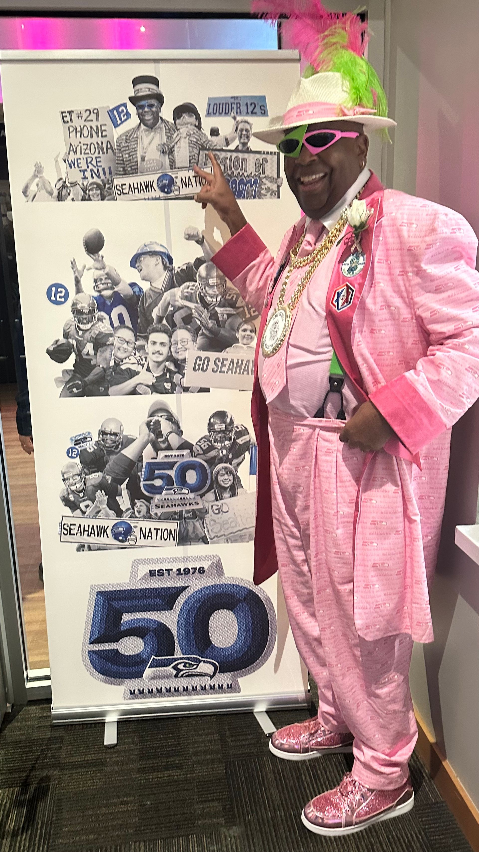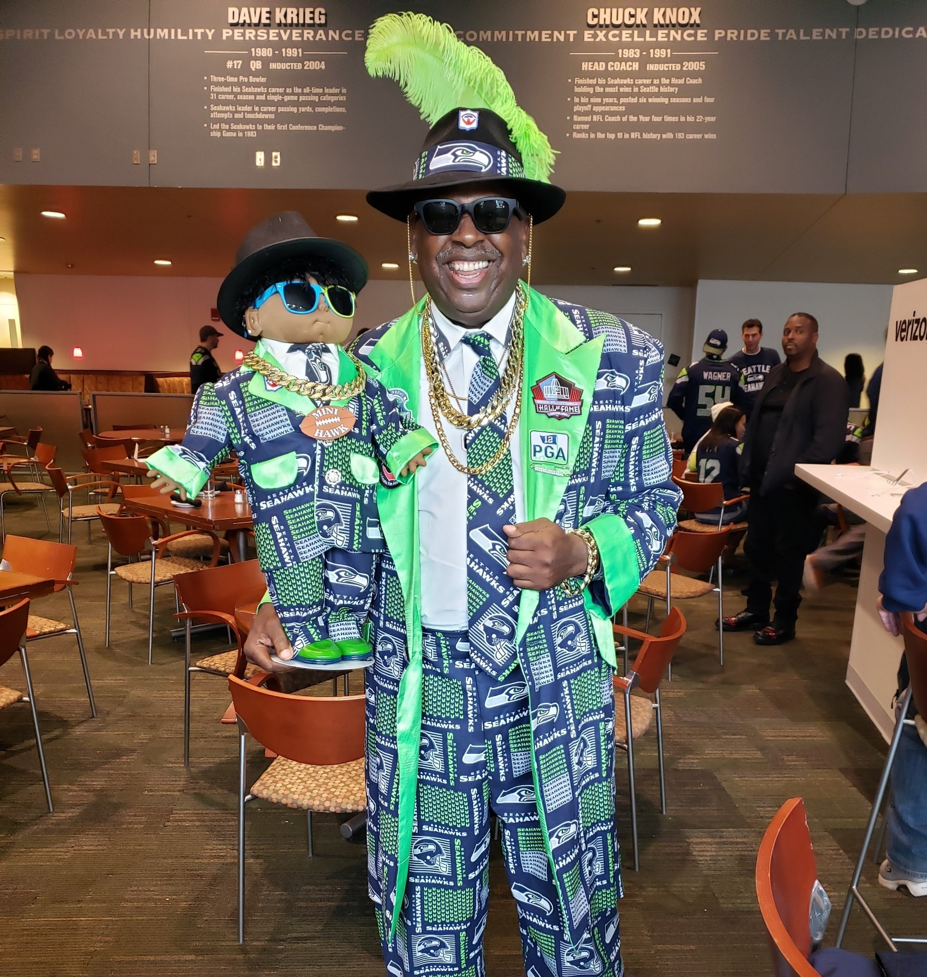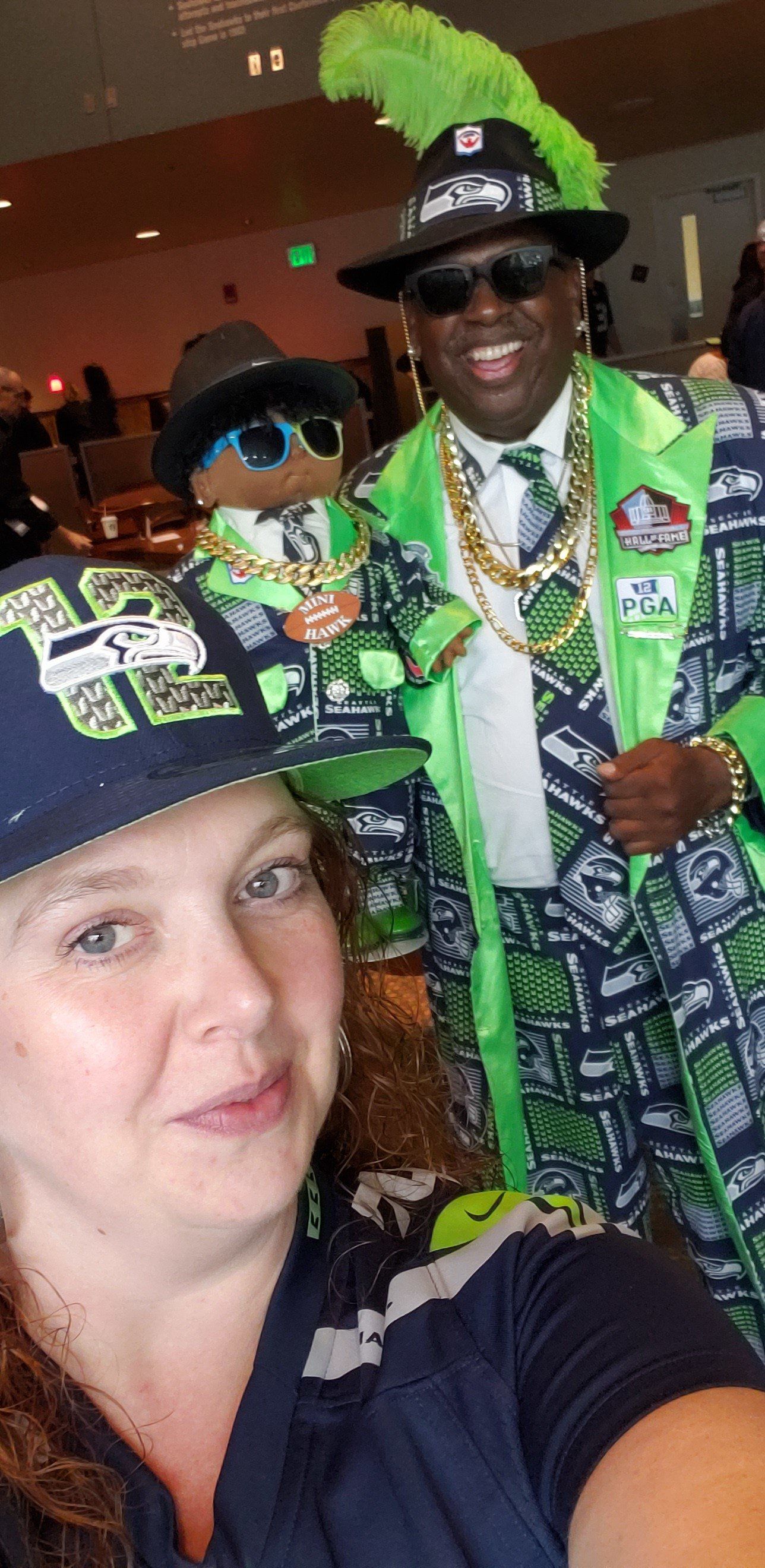 Hawk Daddy first gained popularity in the early 2000s, and since then has become a staple of the Seahawks fan community. He is known for his enthusiastic support of the team and his interactions with fans, often posing for photos and leading cheers. Hawk Daddy is an official inductee to the Professional Football's Ultimate Fan Association!