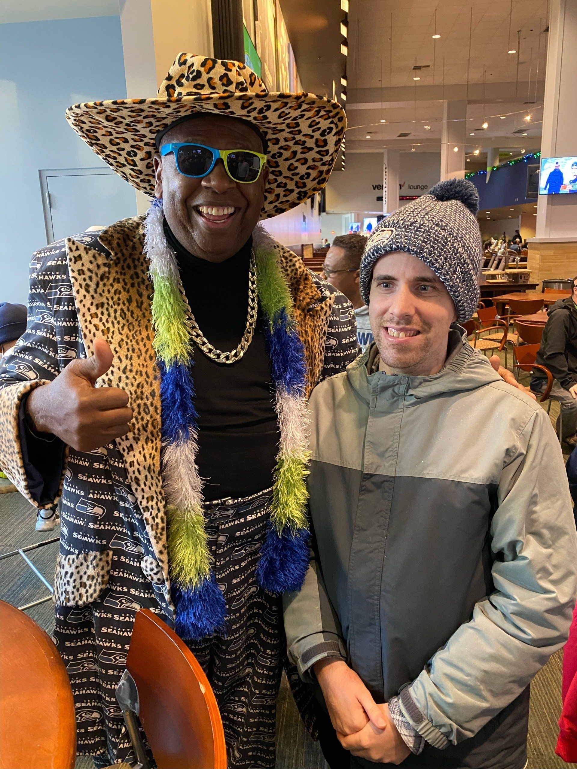 Next time you see Hawk Daddy at the game, or various special events around Seattle, please come up and say "GO HAWKS!"